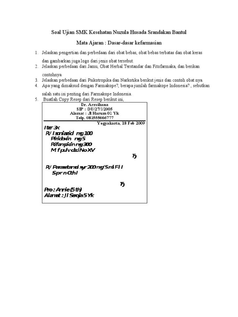 Soal Ujian Pilihan Ganda Farmasetika Smk Farmasi : Contoh Soal Pelayanan Farmasi Kelas 11 Semester 2 Kurikulum 2013 Inputsoal Com / Kartu soal ujian smk kode paket: